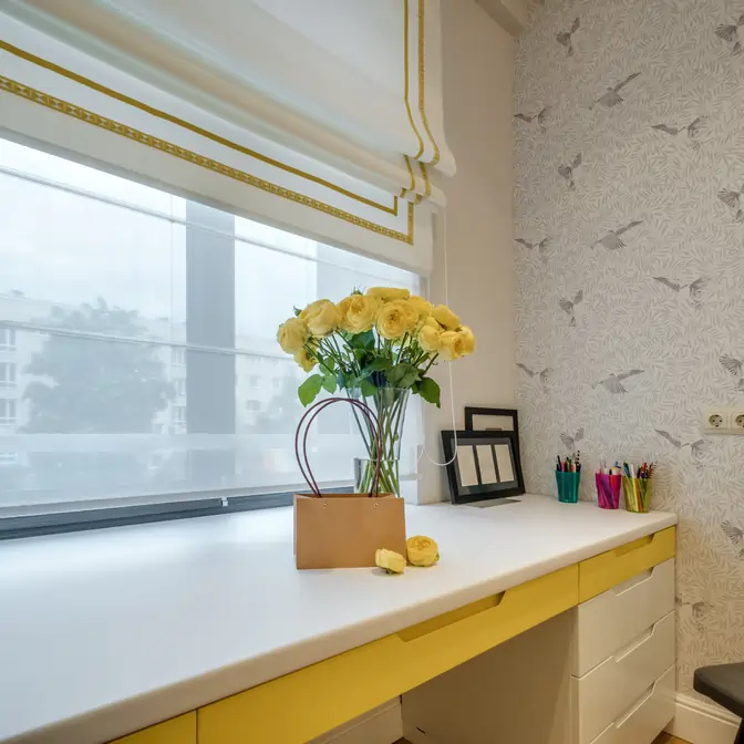 Rolety rzymskie są niezwykle funkcjonalne w małych wnętrzach, ponieważ nie zajmują miejsca po bokach okna, jak tradycyjne zasłony i firany. Nadal będąc zbudowane z tkaniny zasłaniającej i przezroczystej.